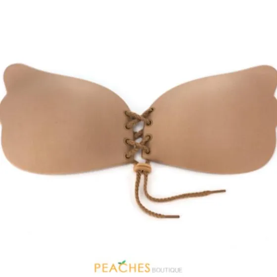 Sexy lace-up enhancement. Silicone adhesive enables to reuse 50 times or more! Create lift, fullness and cleavage by tightening the laces. Available in beige & black. Sizes range from A-D. Packaged in clamshell to easily hang or stand.
