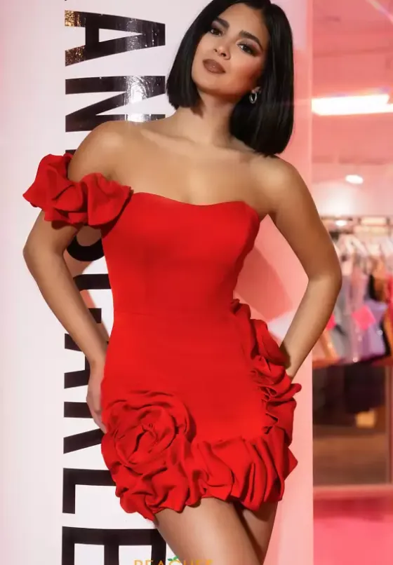Feel chic and glamorous in this Portia and Scarlett short fitted dress style PS24437. The strapless dress has a single shoulder off the shoulder cap sleeve. The hem of the skirt has intricate rushed material that gives it that extra touch of glam. Available in a variety of gorgeous colors which makes it perfect for any special occasion.