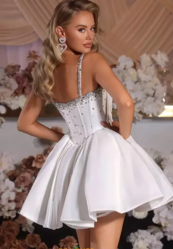 Charming and charismatic, this stunning a line dress PS25752 is the epitome of perfection. Magnetize the crowd in this a line silhouette that is a flattering choice for all silhouettes. Showcasing a low v neckline, the dainty thin beaded straps highlight a lovely bow detailing that adds a sophisticated edge. The structured fitted bodice is encrusted in shimmering stones that gives this style a pop of glitz and sparkle.