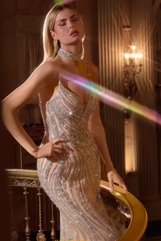Have a diva moment in this spectacular La Divine by Cinderella prom dress style 106CD719. Wavy streams of ultra radiant variants of beads add movement to this skin tight closed skirt dress to have you shimmering from any angle. The discreet zipper closure blends into the glorious beadwork for a flawless finish.