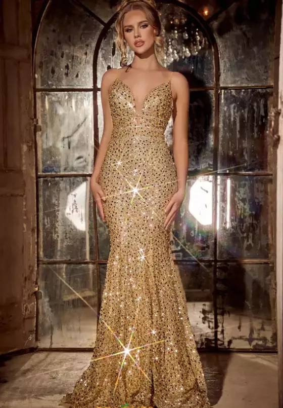 Look like a Hollywood scarlet in this remarkable fully beaded Portia and Scarlett dress PS24041 Showcasing a plunging v neckline, this fitted silhouette hugs your curves beautifully highlighting your hourglass figure. Radiant beads form a flattering array highlighting the thick beaded waistline. The magnetizing low open back and a astonishing sweep train adds a dramatic effect.