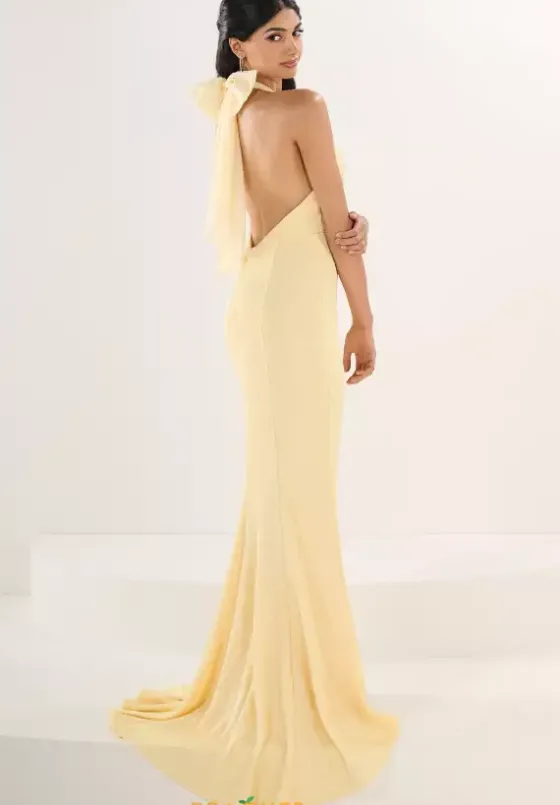 Sleek and sophisticated, this elegant Tiffany fitted dress 16310 is an ideal choice for any social occasion. Showcasing an extravagant halter v neckline, the fitted silhouette defines your curves beautifully. Picture perfect, the open back design features a dramatic bow detailing and lovely sweep train.