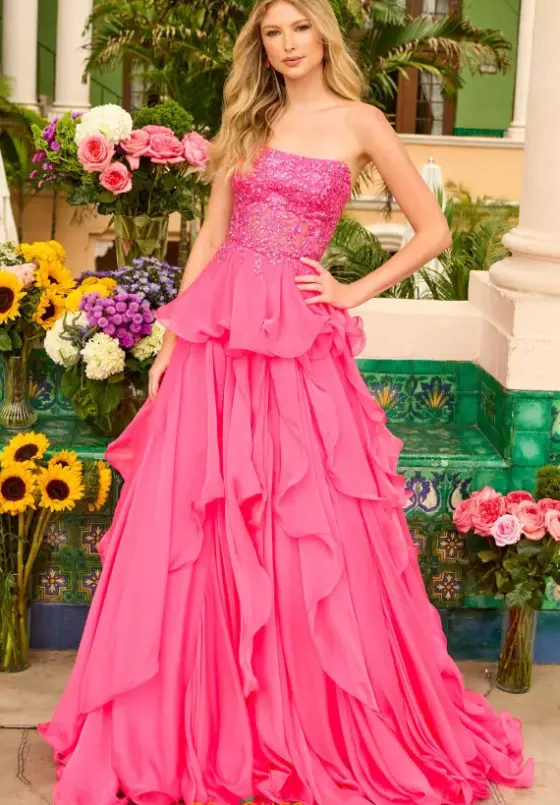 Glisten effortlessly like a princess showing up in lovely long style 29133 by Ava Presley. Showcasing the fitted bodice embellished with delicate applique and detailed with meticulously placed sequin. Headlining the complimentary scoop neckline and a daring chiffon flowing skirt mimicking the waterfall look to have you leaving an everlasting impression.