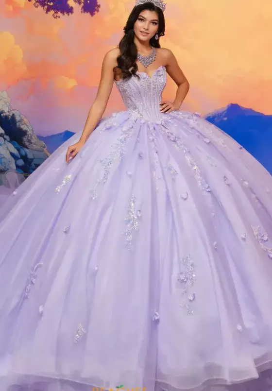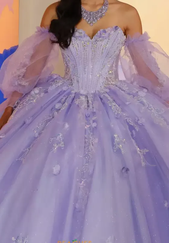 Leave them speechless in this unforgettable Princesa Quinceañera gown, style PR30202. This dreamy gown features separate three quarter balloon sleeves and detachable off the shoulder straps, offering both comfort and versatility. The bodice is adorned with beautiful applique detailing and delicate beading, while the full tulle skirt continues the applique design and is finished with an eye catching detachable bow. Thoughtful details like seamless pockets add convenience without compromising elegance. This gown also includes matching earrings and a capelet for added modesty and sophistication. A lace up back with a modesty panel ensures a secure and graceful fit, making this gown both stunning and refined.