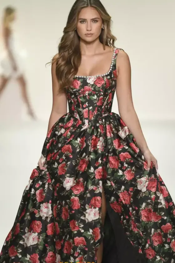 Be highly fashionable in this exquisite Sherri Hill pageant gown style 57725. Dainty but radiant beads trace the scoop neckline and end on the low open back where a zipper closure discreetly blends in. The full satin skirt has a daring high rise slit along with the unforgettable sweep train for a picture perfect finish.