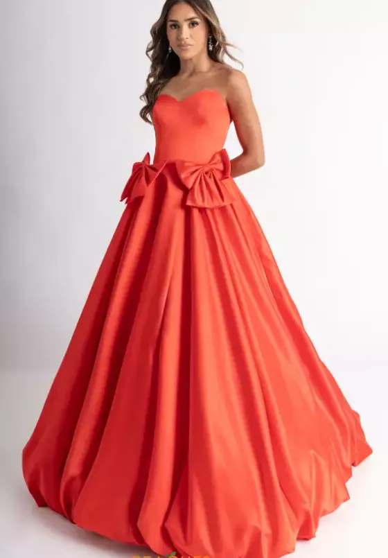 Have your fairy tale moment when you show up in this Rachel Allan ball gown style 71035. The strapless sweetheart neckline dress is made from a satin material. The structured bodice has bow details in front and continues to a full skirt with a gorgeous bubble style hem like no other. Available in stunning colors.