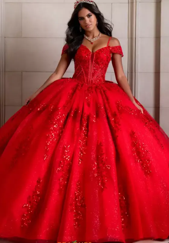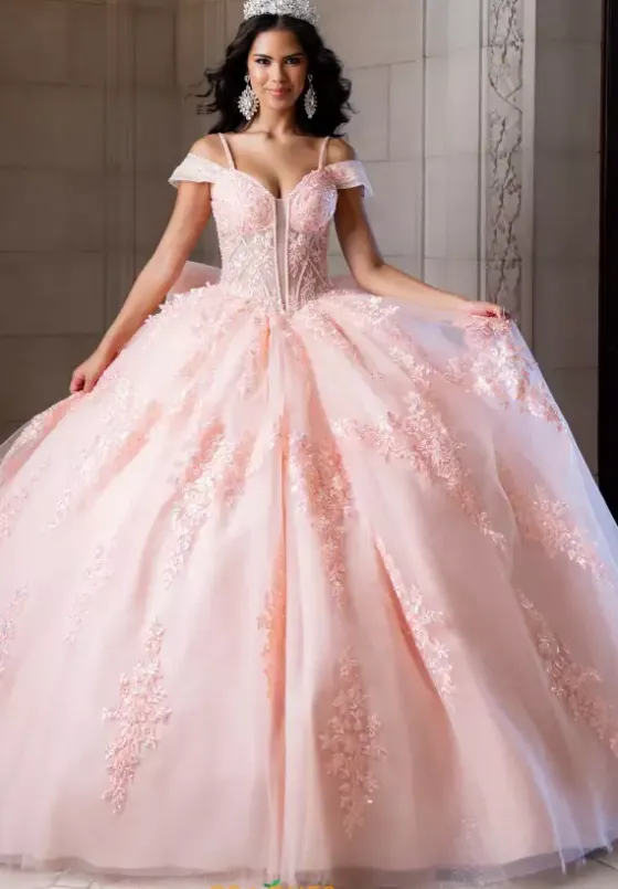 Be the talk of the night in this striking ballgown by Amabella, style QA110. This show stopping look features a sweetheart neckline with delicate straps and detachable off the shoulder cap sleeves, as well as a lace up corset bodice that will accentuate your shape beautifully. It is adorned with glistening beadwork, lace, and applique detailing that cascade down the voluptuous tulle skirt. This luxurious gown has a captivating train and chic bow that will give you that fabulous look all night long.