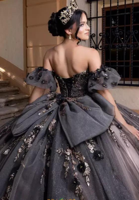 Glorious ball gown style 4080022 by Vizcaya is the perfect choice for your special day. The strapless sweetheart neckline is paired with detachable applique puff sleeves and a matching bow. Showcasing the fitted bodice embellished with trailing 3D floral detailing which highlight the trim of the neckline and meticulously placed all over the full tulle skirt.