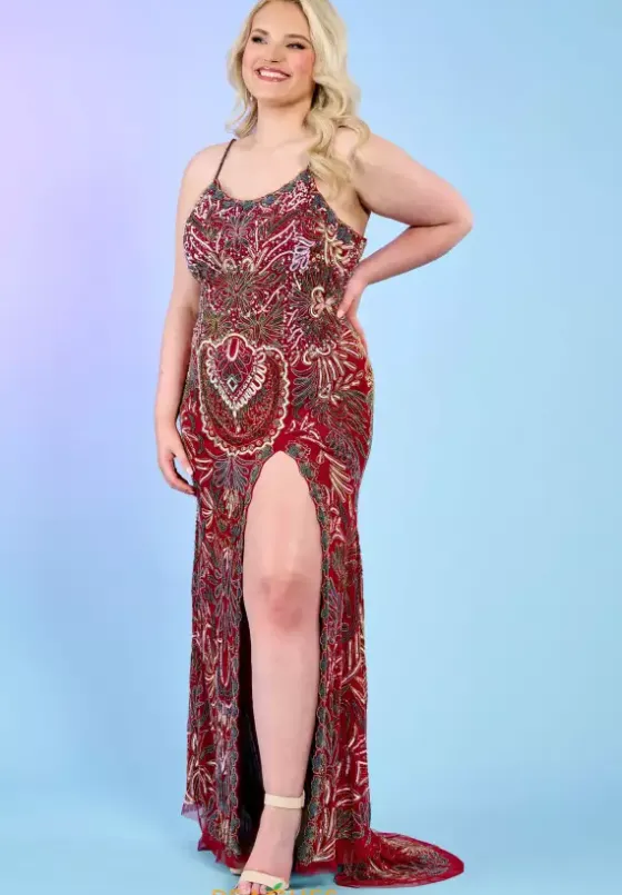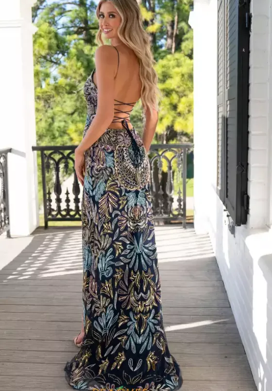 Step into vintage-inspired elegance with the Rachel Allan 70002 gown. This picture-perfect prom dress showcases an intricate pattern of vibrant colored sequins and beading that will ensure all eyes are on you throughout the evening.