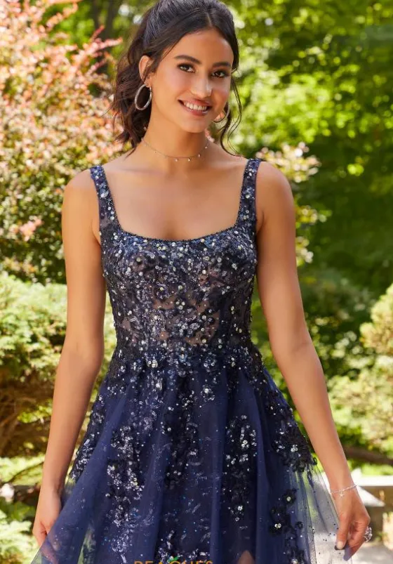 Channel your inner fashionista and wear this one of a kind long dress 47066 by Morilee. This versatile look showcases a fitted silhouette with detachable overskirt adorned with lace appliques. The scoop neckline has thick straps that wrap into a lace up open back. Additional features on this gown include a side front slit and train.