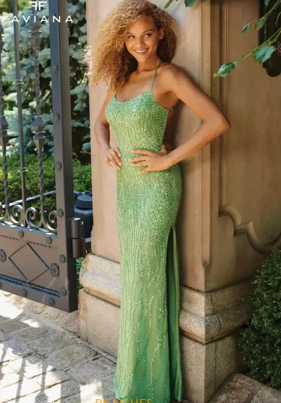 Shine as bright as a diamond as you wear the stunning long dress style 11219 by Faviana. Featuring the flattering scoop neckline paired with a captivating open back detailed with lace to instantly snatch the waistline. Showcasing the unique intricate sequin pattern that decorates the entire gown beautifully for the perfect amount of glisten.