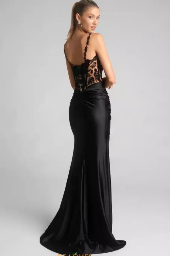 Have that classy yet elegant entrance in long style XO119 by Portia and Scarlett. Complimented with the see through bodice decorated with captivating sequin applique and detailed with glistening meticulously placed beadwork. Finishing off with the satin made skirt detailed with a thigh high slit and flowing train.