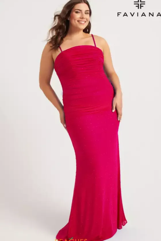 Be simple yet flirty when wearing this classy long fitted dress by Faviana style 9567. This bodice features an appealing scoop neckline, two spaghetti straps that you can adjust to your personal preference. Highlighting a lovely lace up back for that long lasting impression. The net material will hug your waist so perfectly.
