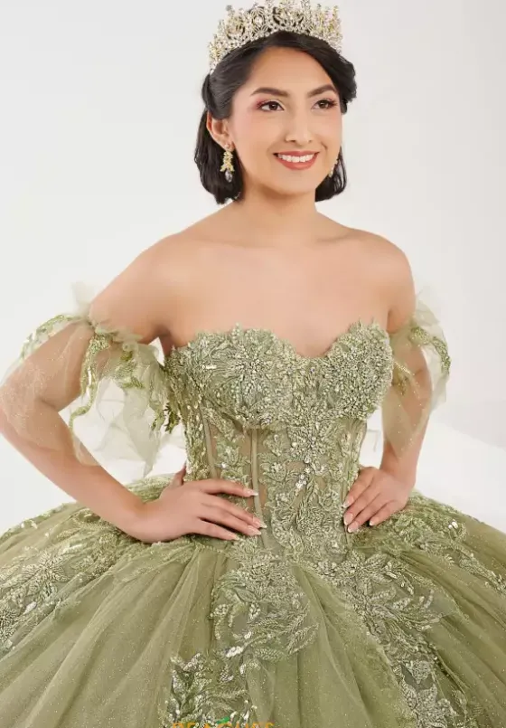 You are sure to sparkle all night long in this fabulous ballgown by Tiffany, style 56495. Showcasing a gorgeous see through bodice that will for sure hug your body beautifully. It also has a sweetheart neckline and off the shoulder cap sleeves. The bodice is fully adorned with glistening beadwork patterns that cascades down the dress. For the perfect final touch it has a gorgeous train.