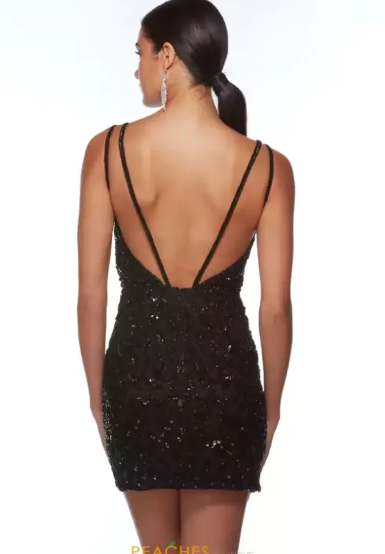 Have fun at your homecoming dance wearing this absolutely gorgeous Alyce Paris short dress 84013. This body con silhouette showcases a flattering v neckline with beaded straps revealing an eye catching open back. The all over lavish beadwork will have all eyes on you as you arrive looking picture perfect.