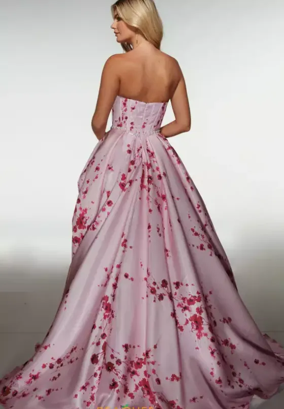 Look like a real life princess in this gorgeous long A line gown by Alyce Paris style number 61989. This fabulous dress features a classic strapless scoop neckline with ruching and a corset bodice with exposed boning. The waistline displays a delicate beaded belt that adds the perfect amount of sparkle. The super unique high low bubble skirt is guaranteed to grab attention at any event you attend.