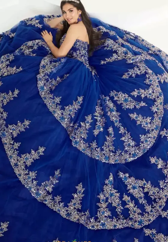 Feel like a true princess in this absolutely stunning Tiffany quinceanera dress 26033. This bold color dress has contrasting rose gold colored appliques that adorn and embellish the dress. The strapless sweetheart neckline bodice has a peplum style first tier. The metallic appliques complete each tier of this layered dress.